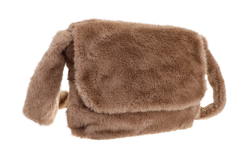 Pluizig & aaibaar – volledig bekleed met zachte faux fur, van de body tot de band.
