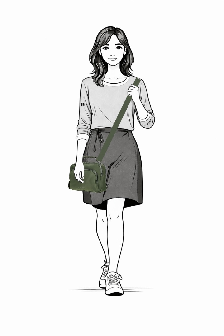 Deze Caroline is ideaal voor dagelijks gebruik: ruim genoeg voor al je essentials, maar nog steeds compact en prettig in gebruik.